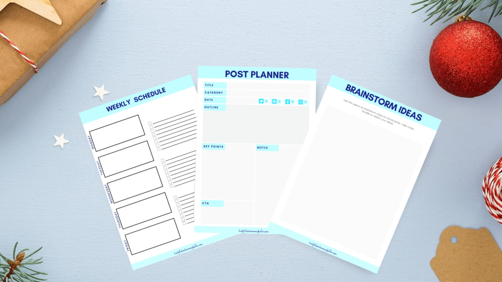 You'll learn what blog posts to write for the holidays that'll make you money. This workbook includes a set of planners to help you keep track of affiliates, and stay organized this holiday season.